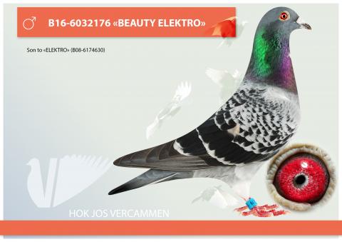 This bird is a 50% Hok Jos Vercammen bird! The mother is BE19-6250967, an original Vercammen bird. She comes from “Beauty Elektro”(BE16-6032176), a direct son to “Elektro”(BE08-6174630). The mother of BE19-6250967 is top hen “Mila”(BE15-6026341). She is closely related to “Barco”(BE01-6387350) and “Elektro”(BE08-6174630).