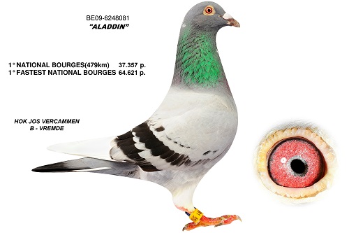 What is the pedigree of this super hen? On the father’s side of this super pigeon you can find a full sister to “Aladdin”(BE09-6248081), 1° fast. National Bourges (479km) 64,621 pigeons and a full brother to “Jonge Panter”(BE09-6248211), 2° fast. National Bourges (479km) 64,621 pigeons. On the mother’s side you can find our traditional successful crossing “Elektro”(BE08-6176430) child x “Barco”(BE01-6387350).